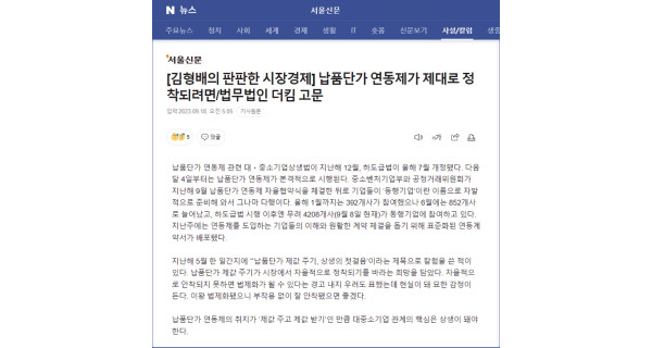납품단가 연동제가 제대로 정착되려면