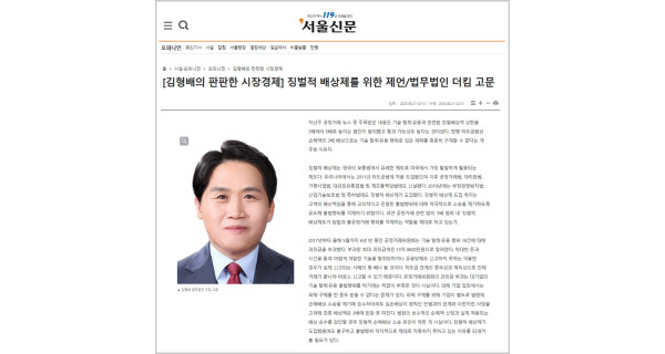 서울신문 '김형배의 판판한 시장경제' 징벌적 배상제를 위한 제언 (법무법인 더킴로펌 김형배 고문/ 전 한국공…